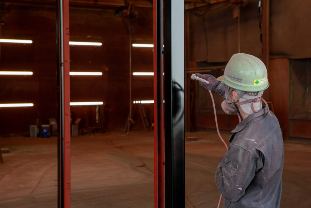 しっかり下地処理を行なった後、サビ止め、上塗り、仕上げの順番で塗装を行ないます。